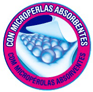 Centro de absorção O xixi é encapsulado por centenas de milhares de microesferas que absorvem até 30 vezes o seu peso e impedem que a umidade retorne à superfície. |